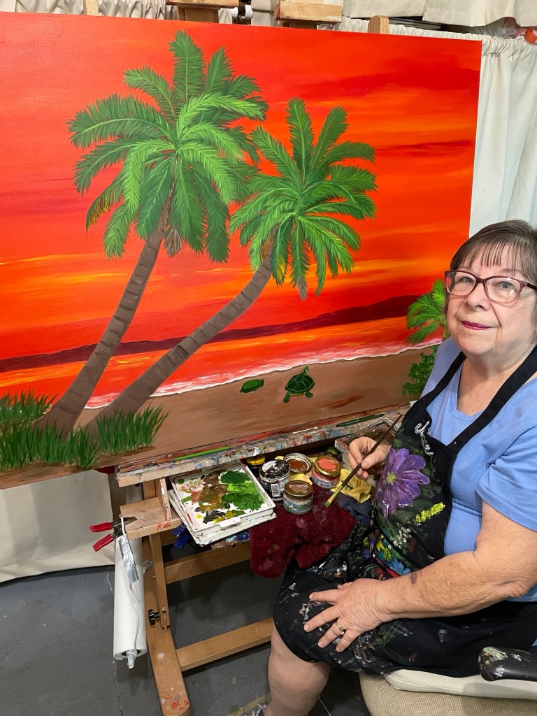 1. Thank you, Nancy. Jo’s painting isn’t finished yet; she’s not happy with the color of the turtles or sand yet. By tomorrow, it all could be completely different with birds instead of turtles.